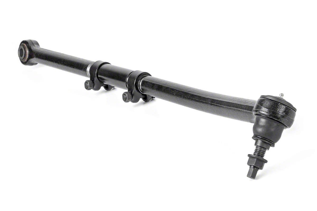Completely Adjustable. The Forged Front Adjustable Track Bar from Rough Country is fully adjustable, so you don’t have to remove it from your truck. Plus, it features an innovative clamp and sleeve system, which means it can easily line up with vehicles that have 1.50-8 inch lifts.