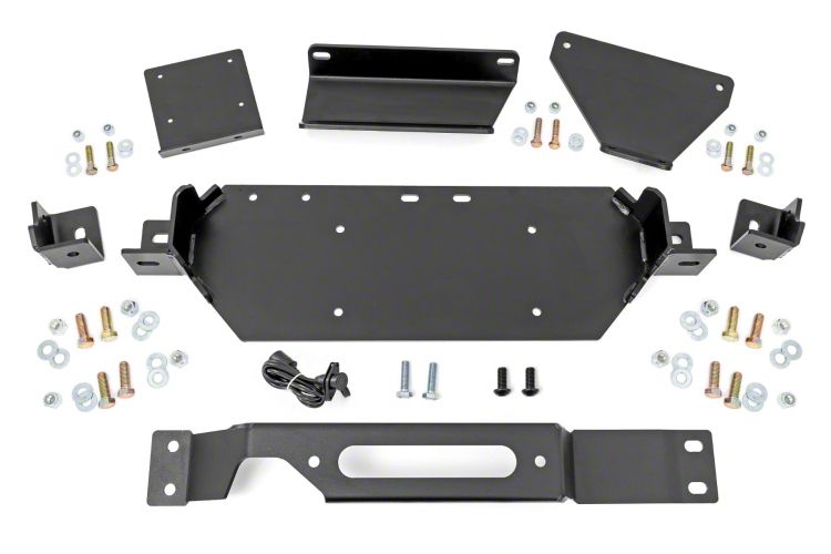 Steel Plate Bracketry. Add utility while maintaining aesthetics with the Rough Country Hidden Winch Mount, engineered for all 2020-2022 Ford F-350 Super Duty Models. Designed with a bolt-on installation, this winch mount requires no modification or trimming, offering a hassle-free setup. It's crafted from 1/4-inch steel plate bracketry for durability and longevity.