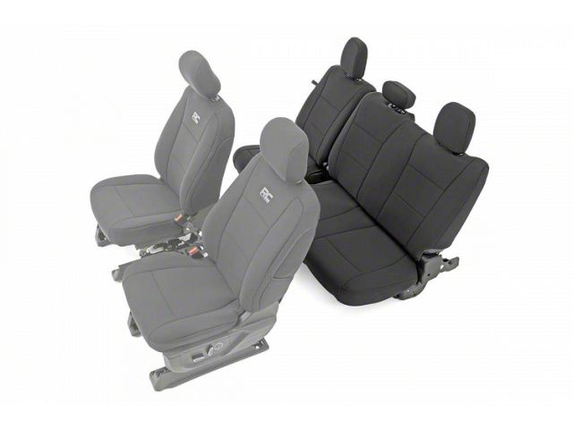 Custom Seat Covers. Protect your F-150's seats while adding a stylish and practical touch to its interior with the Rough Country Neoprene Rear Seat Covers in Black. Designed to fit snugly over the rear seats of your ride, these seat covers are easy to install with no special tools required. The covers are custom-tailored to fit your vehicle's specific seat contours and feature a tight, form-fitting design that won't slip or slide around.