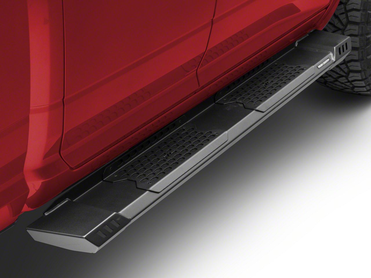 Sturdy Single-Unit Build Quality. The Rough Country HD2 Running Boards are made from heavy-gauge steel and fabricated into a single unit, enhancing its strength and durability. Two embossed, non-skid foot plates located at the front and rear entry points prevent slippage and contribute to the boards’ overall look. Lastly, the assembly is finished in a robust, flat black powder coat for superior corrosion resistance.