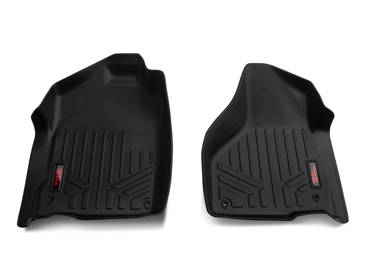 Application. The Rough Country Heavy Duty Black Front Floor Mats fits all 2012 to 2018 Dodge RAM 1500 Regular Cab and Quad Cab models.