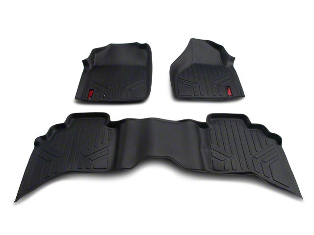 Application. These Rough Country Heavy Duty Front & Rear Floor Mats – Black fit all 2002-2008 Dodge RAM 1500 quad cab models.
