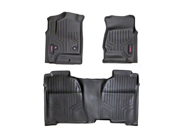 Application. The Rough Country Heavy Duty Front & Rear Floor Mats - Black are designed for the 2007-2013 GMC Sierra 1500 Extended Cab and Crew Cab.