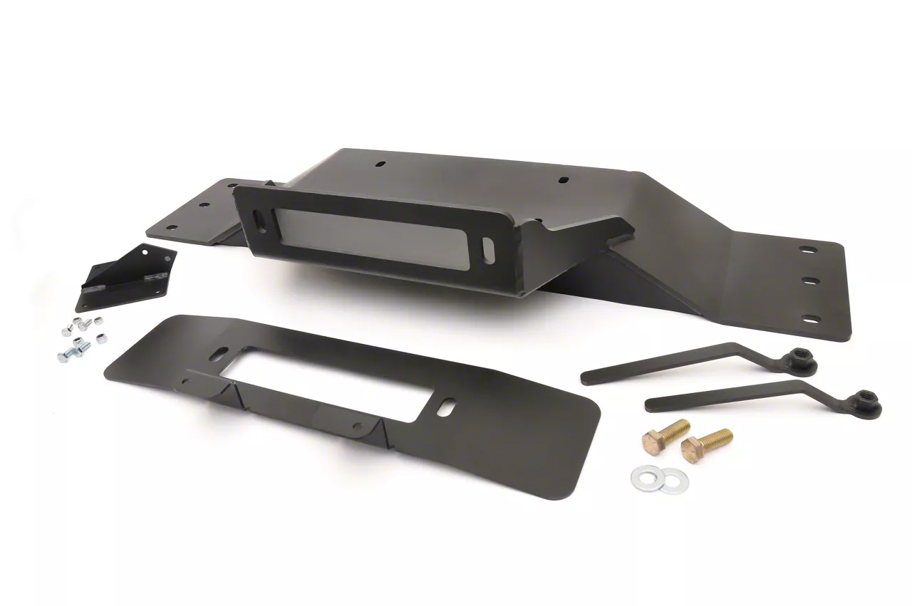 Durable Steel Construction. Designed to meet your towing and hauling needs, this Rough Country Hidden Winch Mounting Plate is made of durable ¼-inch plate steel. It is then completed with a black carbon powder-coat finish to further protect the material from rust and fading.