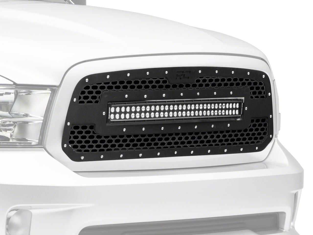 Stylish and Functional Look. It is now possible to give your 2013-2018 Dodge RAM 1500 that unique attention-grabbing look with the addition of Rough Country Mesh Upper Grille Insert. This aftermarket upgrade features a distinctive laser-cut mesh design that commands attention on the road.