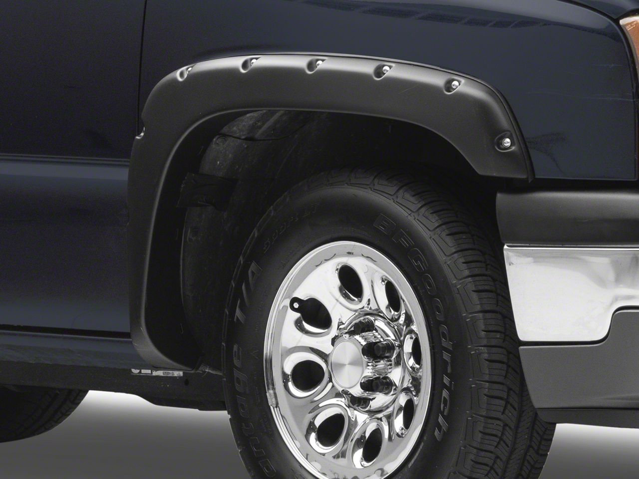 Look Dominant on the Road. Add more bravado and an aggressive look on your Chevrolet Silverado with Rough Country’s Pocket Fender Flares. These mean-looking flares have a simulated riveted design that’s sure to compliment your tires, as well as the overall exterior look of your truck. These fender flares come in a Flat Black paint to give your ride a complete blackout look. However, these are easily paintable to give you more customization options.