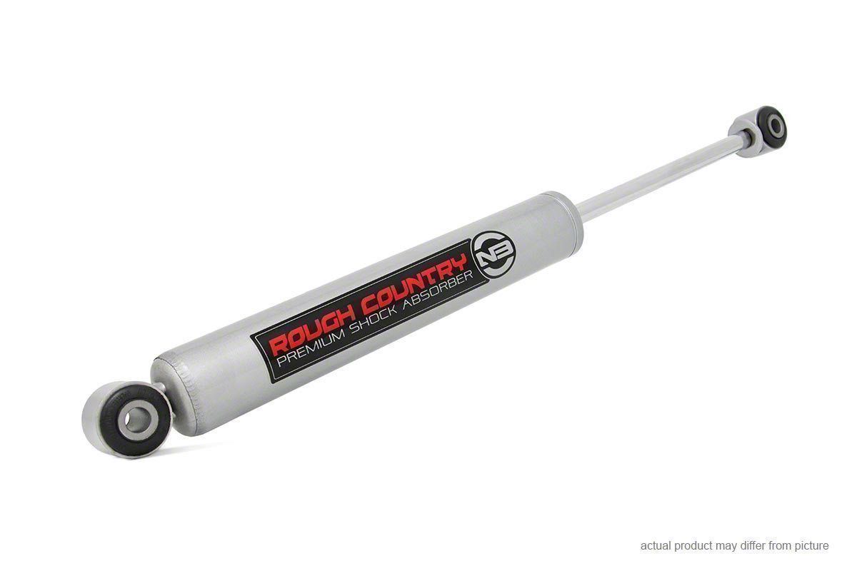 Aggressive Shock Damping Capability. The Rough Country Premium N3 Front Shock for 6-7-inch Lift is a powerful shock absorber. Its nitrogen-powered 10-stage variable valving significantly reduces vibration and shock on most types of roads, so that you can drive harder and faster no matter how jagged your expeditions may get.