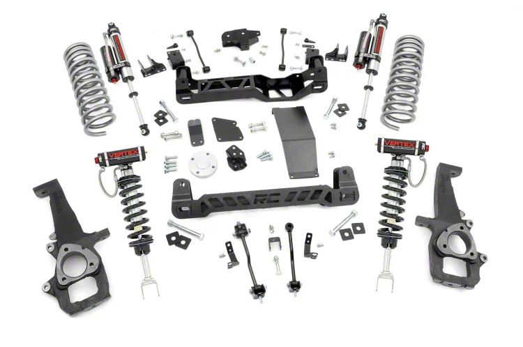 Reinforced Performance. Boost your RAM’s off-road capabilities by installing this Rough Country 6-Inch Suspension Lift Kit with Adjustable Vertex Coil-Overs and Vertex Shocks. Upgrading to this suspension lift system transforms your truck with an aggressive stance, increased ground clearance, and superior off-road performance. This kit consists of front Vertex Coil-Overs and rear Vertex Shocks, knuckles, crossmembers, and sway bar links for bolder off-road confidence and improved drivability.