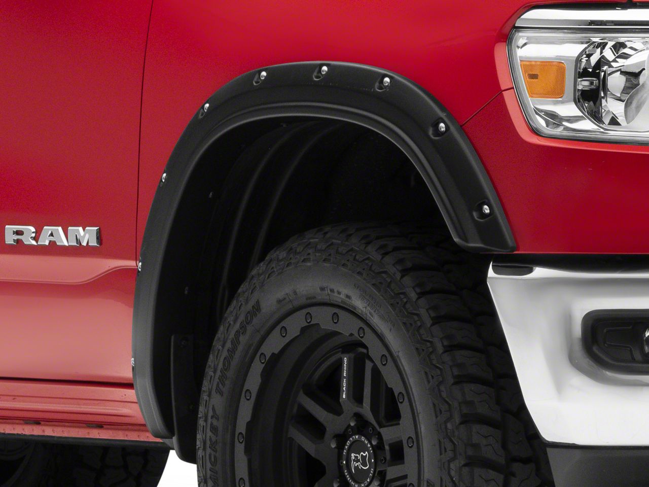 Application. These Rough Country Rivet Pocket Fender Flares in Flat Black fit 2019-2022 RAM 1500 models, excluding Rebels.