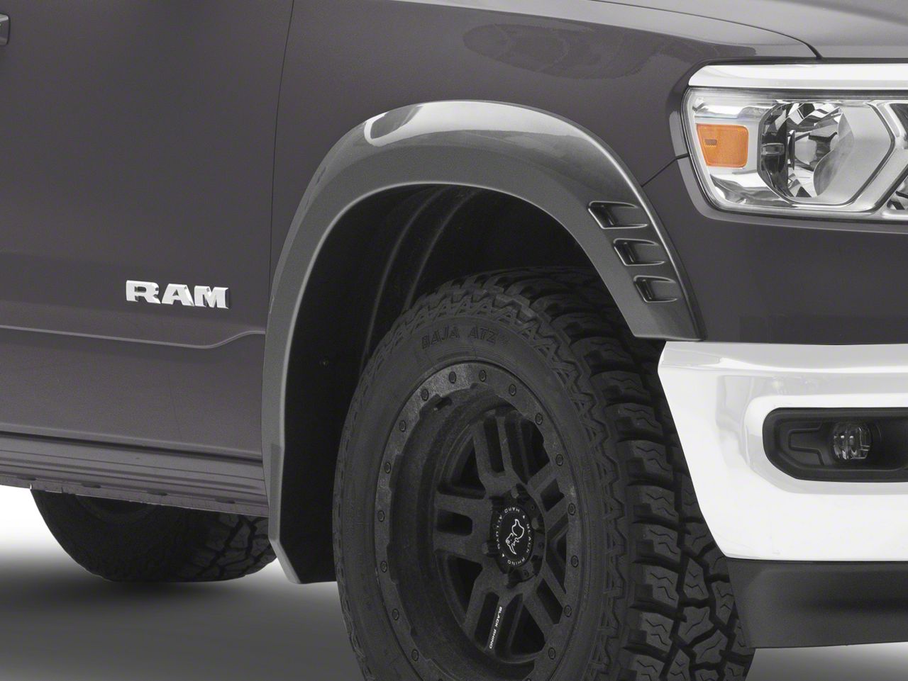 Enhanced Protection and Style. The Rough Country SF1 Fender Flares provide rugged and stylish protection against mud, rocks, and other road debris for your 2019-2024 RAM 1500, excluding Rebel and TRX models. Featuring a wide stock design with a granite crystal finish, these pre-painted fender flares add a bold look while enhancing your vehicle's durability.