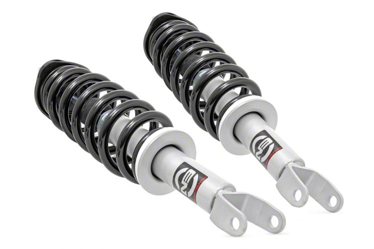 First Rate Struts for Your Stock Height RAM. The Rough Country Stock Replacement Front N3 Struts are the perfect choice for RAM 1500 owners looking to get maximum damping and handling performance. These struts are designed for stock height trucks and utilize dependable twin-tube, nitrogen gas-charged technology with infinitely variable damping. This gives you exceptional damping and handling performance off-road and a comfortable ride on the highway. These factors make these struts the ideal choice for daily driven trucks that also see weekend off-road action.