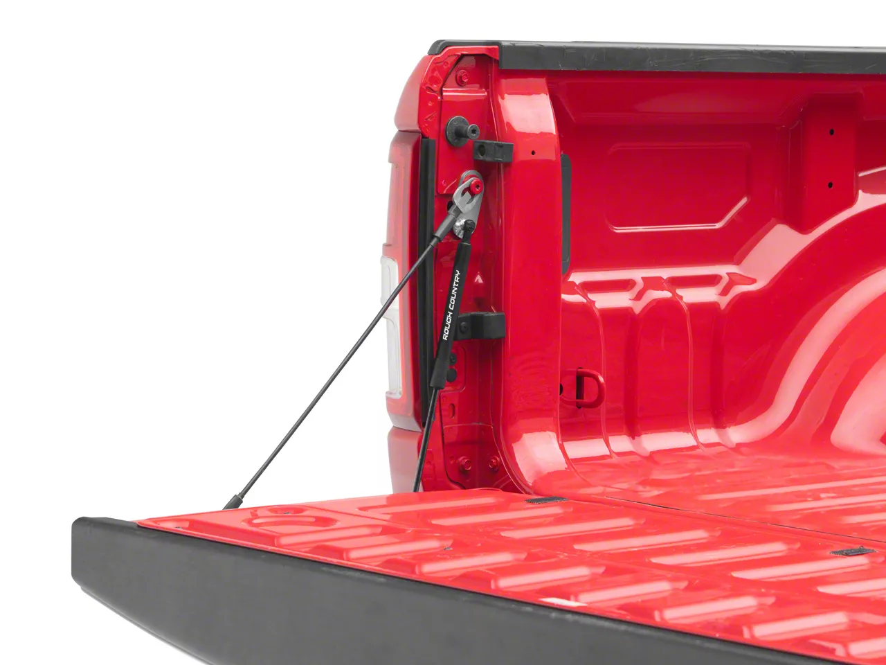 Vehicle-Specific Attributes. Upgrade your 2019-2026 RAM 1500 with the Rough Country Tailgate Assist, a simple yet highly effective addition for enhanced tailgate functionality. This assist requires no drilling and is engineered with vehicle-specific attributes for a perfect fit. Its hassle-free bolt-on installation process makes it easy to add to your truck, without the need for professional assistance.