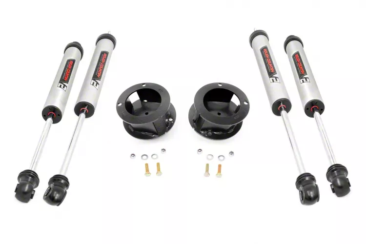 High-Quality V2 Monotube Shocks. Rough Country ensures improved ride quality by including high-strength, nitrogen-charged V2 Shocks built with durability and adjustability. These monotube shocks feature multi-stage, adjustable damping and are furnished with high-flow, hardened chrome shafts and honed steel bodies for improved ride comfort and easier handling.