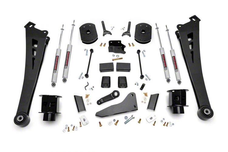 Lift Your Ride. This Rough Country 5-Inch Radius Arm Suspension Lift Kit with Coil Spacers and Premium N3 Shocks will increase ground clearance and compliment your RAM's good looks. You can run bigger tires (37-inchers), appear aggressive, but still have a smooth ride thanks to the shocks.