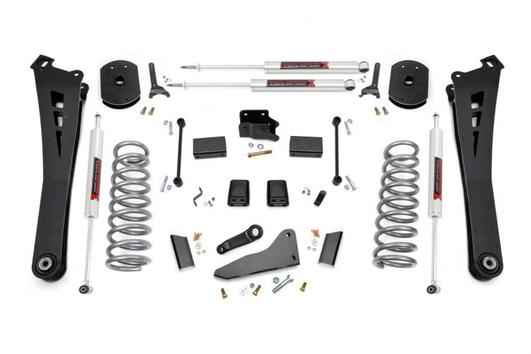 Installation. Putting this Rough Country Suspension 5-Inch Radius Arm Suspension Lift Kit with Standard Rate Coil Springs and M1 Monotube Shocks on your 4WD 6.7L RAM 2500 takes a day to install.