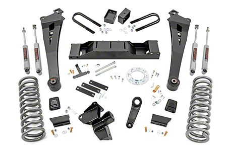 Aggressive Stance and Bolder Performance. Upgrade to this Rough Country 5-Inch Radius Arm Suspension Lift Kit with Premium N3 Shocks to experience enhanced off-road driveability with reinforced suspension support. This performance lift kit includes durable front and rear Premium N3 shocks, heavy-duty radius arms, high-strength coil springs, track bar and sway bar relocation brackets, rear blocks, and U-bolts.