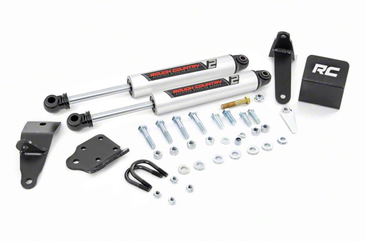 Superior Steering for You Lifted RAM. Level up your lifted RAM 2500 steering feel with the Rough Country Dual V2 Steering Stabilizer. This dual steering stabilizer is equipped with a pair of Rough Country’s beefy V2 dampers that feature a monotube design with internal floating pistons. These dampers offer maximum steering control and handling feel, compared to your truck’s factory stabilizers. These factors make them perfect for 2-inch and higher lifted trucks that run larger wheel and tire setups.