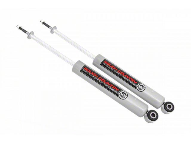 Long-Lasting Quality. Rough Country uses a 54 mm shock body for efficient heat dissipation, especially on rigorous activities. With a chrome-hardened, 18 mm shaft, and zero-leaks multi-seal carrier, these shocks are durably built for long-lasting performance. Additionally, they are furnished with reinforced rubber bushings for impressive vibration damping and sports an appealing metallic silver finish.