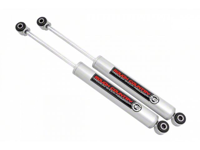 Engineered to Perform. These Rough Country Premium N3 Rear Shocks for 3.50-6-Inch Lift deliver an increased vehicle profile and powerful dampening on rocky terrain. Made of a 200 PSI nitrogen-charged monotube construction with a gigantic 1 3/8-inch bore and chrome-hardened 9/16-inch piston rod equipped with packing spring-loaded power, these shocks will give you a true off-road performance.
