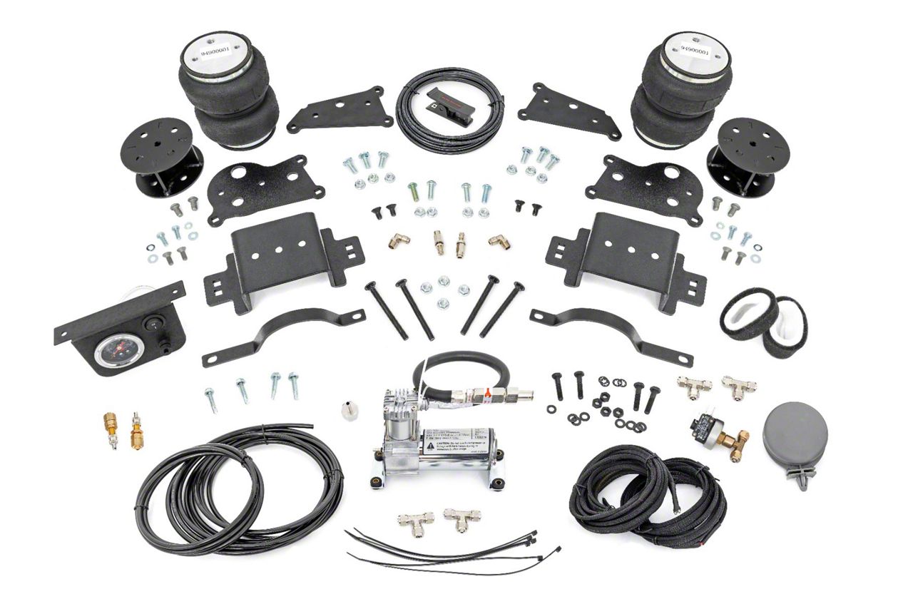 Efficient. The Rough Country Rear Air Spring Kit elevates your vehicle's load-carrying capabilities to new heights. This enhancement is especially crucial for individuals who regularly transport weighty cargo, tow sizable trailers, or require that extra bit of strength and stability for heavy loads. By reinforcing the vehicle's ability to handle more weight, the kit ensures safe and efficient transportation of goods and equipment. This additional capacity not only adds to your vehicle's versatility but also provides peace of mind, knowing that your vehicle is more than capable of managing the extra burden with ease.