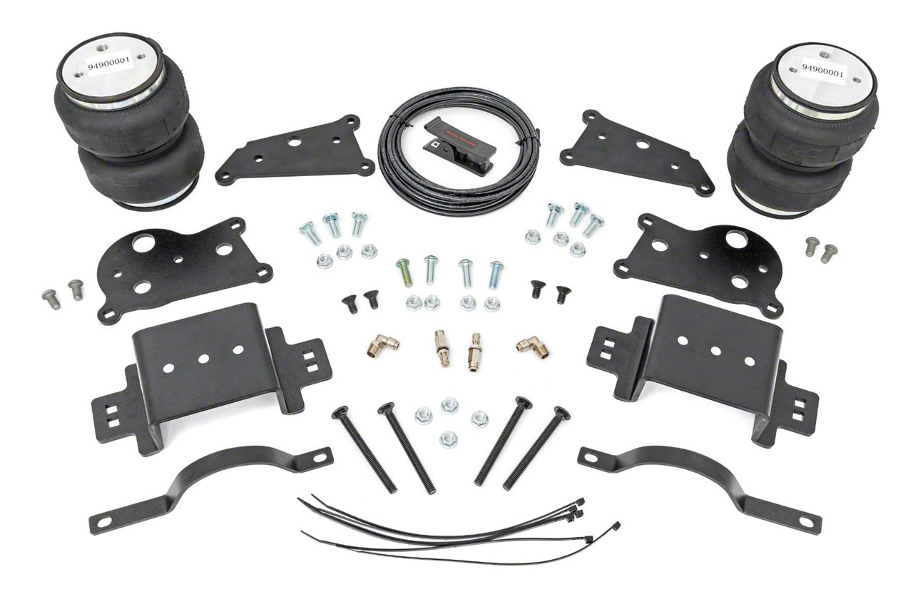 Installation. Designed for a direct replacement, the Rough Country Air Spring Kit is simple to install with no special tools required. It comes with all the necessary installation hardware, ensuring a hassle-free process.