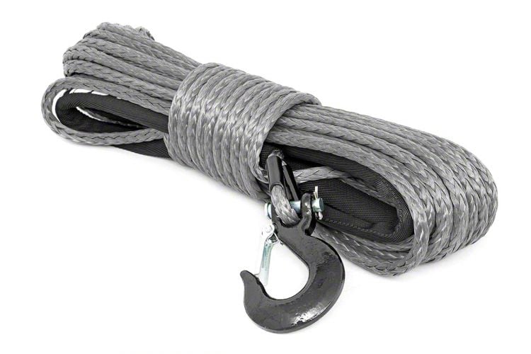Description. Replace your worn out line with Rough Country's super-durable Synthetic Winch Rope! This 3/8in replacement rope is 85 feet long and rated for up to 16,000lbs of recovery power! Synthetic ropes yield a far greater strength to weight ratio than steel ropes, making them more durable and reliable in recovery scenarios. When steel ropes fray they can produce sharp, painful barbs, a symptom that is not possible with synthetic rope lines. Plus, synthetic ropes do not store energy under stress like steel ropes do, making the safer to operate in the event of breakage.
