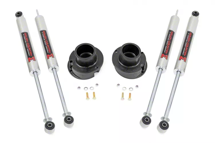 Installation. Installing Rough Country 2.50-Inch Front Leveling Kit with M1 Monotube Shocks on your vehicle is moderately difficult and requires no drilling.