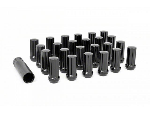 Good Looking Style. Whether you are running your factory rims or a set of oversized wheels and tires, these Rough Country Black Spline Style Lug Nuts are a great way to add a little extra styling to your truck. This Kit contains (32) Lug Nuts and (1) socket key.