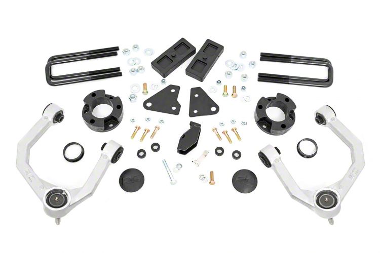 Level Up Your Look. The Rough Country 3.50-Inch Suspension Lift Kit offers versatility to achieve your desired look. Whether you prefer a leveled appearance for a balanced aesthetic or a lifted stance for a more aggressive look, this kit provides the flexibility to customize your vehicle's profile. Enhance your vehicle's visual appeal while gaining valuable ground clearance.