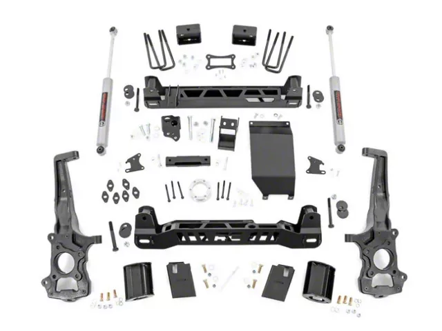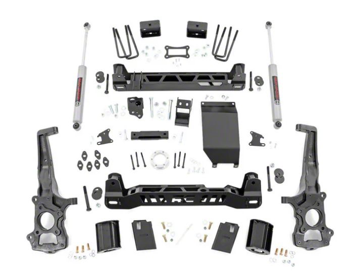 Durable Spacers and Blocks. Rough Country equipped this 6-Inch Suspension Lift Kit with highly durable strut spacers and rear blocks. These crucial components are made of premium materials and have been thoroughly tested to aid in effectively lifting the vehicle to its desired height.