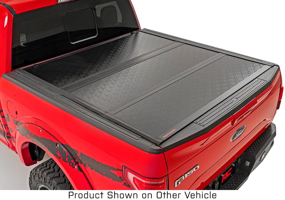 Untouchable Storage Security. Keep your truck bed baggage safe with the Rough Country Hard Tri-Fold Tonneau Cover. Each of its assembly panels is made out of A-Tier aluminum and is given a weather-resistant black textured coating to maintain a tight lock through rain or shine.