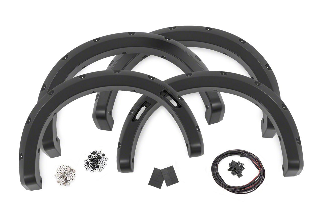 Add aggressive good looks quickly and easily with Rough Country's Fender Flares. Nothing compliments a new lift, wheels, and tires like a set of stylish, mean-looking fender flares. Rough Country's Fender Flares are designed with a simulated riveted look. These fender accessories bolt-on quickly and easily in a few secure mounting points, making installation a cinch. No cutting or drilling is required to install, and these flares can be easily removed and return your truck to stock! These UV treated fender flares ship in flat-black or can easily be painted to match your vehicle, and are designed to withstand the sun, rain and other elements of nature. Rough Country Fender Flares are guaranteed to be free of defects for 3 years!