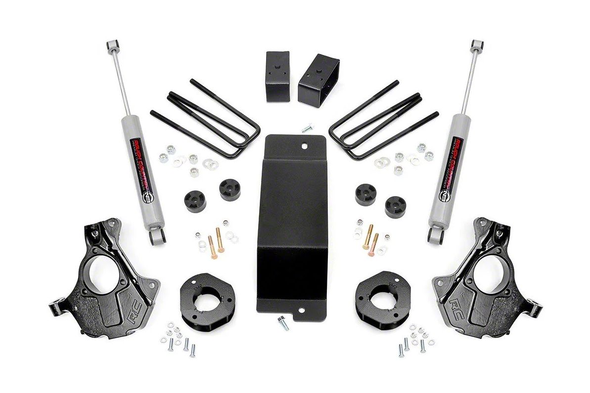 Added Height and Off-Road Performance on Your Truck. The elevation that the Rough Country 3.50-Inch Suspension Knuckle Lift Kit gives your truck will make off-road driving a comfortable and exciting experience. This kit is made to accommodate 33 x 11-inch tires, and both stock and aftermarket wheels measuring from 17 inches to 20 inches in diameter. The kit also comes with lifted knuckles, lift blocks that perform better than stock cast blocks, and Rough Country’s own N3 rear shocks. There’s no better formula for fun driving on rocky, bumpy trails.