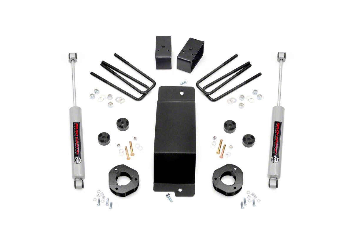 Straightforward Installation With Modifications. The Rough Country 3.5-Inch Suspension Lift Kit With Premium N3 Shocks is designed to install in factory locations on your truck. Minor cutting and grinding are necessary to properly fit a number of this kit’s components. Additionally, expert-level mechanical knowledge is needed for an efficient install procedure. If you are not comfortable with this type of install, professional installation is always an option.