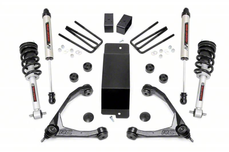High-Performance Dampening. Drive easy in your Sierra with this Rough Country 3.50-Inch Forged Upper Control Arm Suspension Lift Kit with Lifted Struts and V2 Monotube Shocks to boost it up for the off-road. Sporting the latest in dampening technology, it utilizes the N3 Struts paired wit the very best V2 Shocks to deliver reliable performance to make your bumpy drives much smoother. For even better off-road performance, you can decide to use larger wheels up to 33 inches, for superior ground clearance and all-terrain driving.