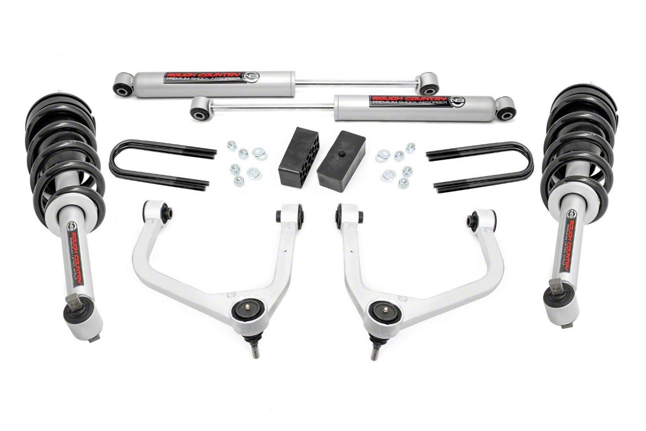 Application. This Rough Country Suspension Lift Kit fits 2025–2026 GMC Sierra 1500 models with OEM mono-leaf springs and without Adaptive Ride Control. Designed for drivers seeking to enhance ride height, stability, and capability, it provides an ideal balance between rugged performance and refined handling. With its precision-built forged control arms, high-performance N3 shocks, and durable matte finishes, this lift kit offers exceptional strength, improved articulation, and a commanding presence on and off the road.