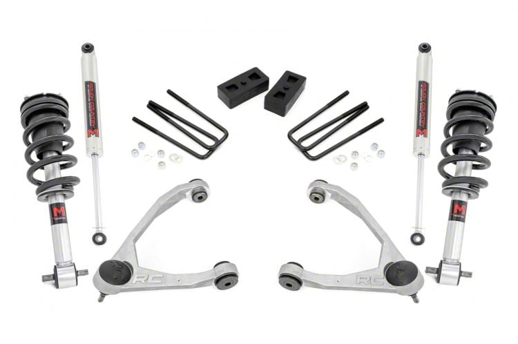 Improved Dampening. Get through dirt trails and roads more comfortably with this Rough Country 3.50-Inch Suspension Lift Kit with Upper Control Arms and M1 Monotube Shocks on your Sierra 1500. Sporting the latest M1 shock absorbers, it offers high responsive bounce to better handle uneven terrain.