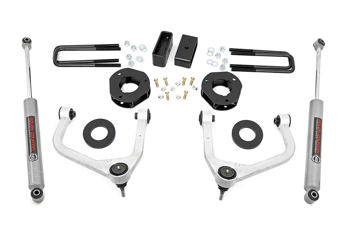 Go Off-Road. Off-roading can be tough for your Sierra’s stock suspension, that's why you need a lift kit that was specifically designed to take on the great outdoors. Luckily, this Rough Country 3.50-Inch Suspension Lift Kit has what you need to help you take on the obstacles found on and off-road. With 3.5 inches of lift, this kit can accommodate tires up to 295/55R20 in size. This Rough Country Kit features forged aluminum control arms as well as fabricated steel lift blocks and strut spacers for extra strength. What’s more, the included Premium N3 Shock absorbers will provide a highly comfortable ride, even when tested across rough terrain.