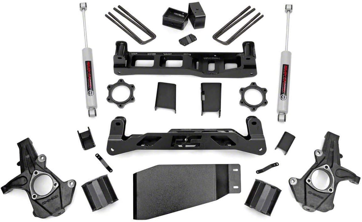 All-Terrain Lift Kit. If you want to improve your Sierra's off-road capability, this Rough Country 5-Inch Suspension Lift Kit with Premium N3 Shocks is for you. Users can anticipate gentler runs and a trail blazing ride like never before thanks to the best materials and Rough Country's greatest shock absorbers out from the N3 series.