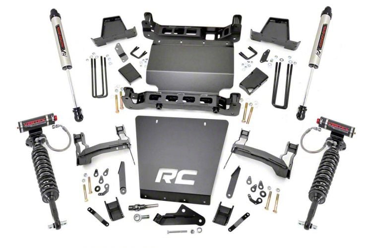 Awesome Lift and Performance Upgrade. Make your presence known when you’re out in the harsh off-road environment with this Rough Country 7-Inch Bracket Suspension Lift Kit with Adjustable Vertex Coil-Overs and V2 Monotube Shocks. By increasing your GMC Sierra 1500’s ride height by 7 inches, you’ll tower over boulders, fallen trees, and other obstacles on the trail. Plus, this upgrade comes with a skid plate assembly, giving you additional undercarriage protection.