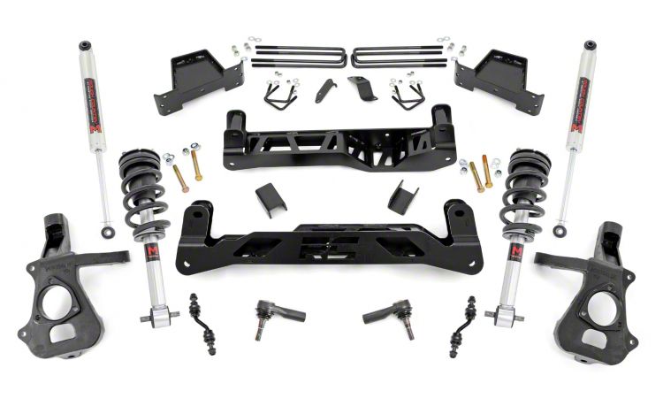 Description. Gain ride height at an incredible value with Rough Country's 7-inch Suspension Lift for 2WD '14+ Chevy / GMC 1500 Pickups. This massive lift affords your 2WD truck the ability to run up to an impressive 35-inch tire on factory wheels with our beefy lifted knuckles and is designed with 100% laser-cut materials for the best possible fit on your vehicle. Includes a set of front and rear high-clearance crossmembers featuring the "RC" logo. This whopping 7-inch Lift also comes with a set of durable, fabricated anti-wrap lift blocks that offer a huge boost while helping prevent axle wrap issues. Give your pickup a lifted and leveled stance easily, with no modification to the stock differential mounts, drivetrain or exhaust required to install! Includes Rough Country's Lifetime Replacement Warranty.