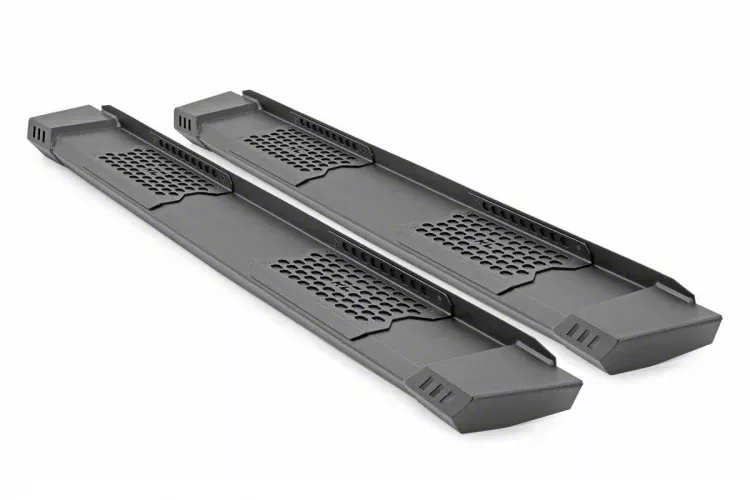 Rugged Styling and Protection. Rough Country Cab Length HD2 Running Boards are a practical upgrade for your Sierra. These great looking Running Boards provide a convenient step for easy entry in and out of your 2019-2026 GMC Sierra 1500 Crew Cab while giving it a rugged appearance. As an added bonus, these Running Boards will help to protect your vehicle's body and paint from stones and road debris that get kicked up while driving.