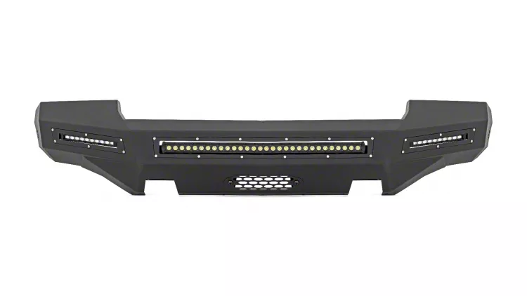 Adds Style and Protection. Let your truck sport a more aggressive look by installing this Rough Country High Clearance Front Bumper with LED Lights. This bumper is crafted with a beefed-up build and comes with a modular, industrial design for easy customization. Aside from its outstanding style, this front bumper helps fortify your truck’s front end protection, so you can confidently drive in rough types of terrain. Plus, its high clearance design allows you to easily overcome obstacle-filled paths.