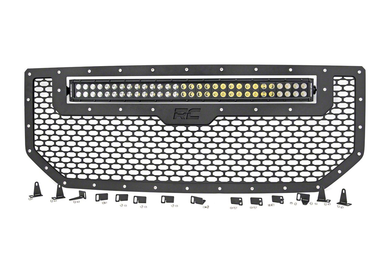 Application. The Rough Country Black Mesh Upper Grille Insert with 30-Inch Black Series LED Light Bar is intended for use on all 2016-2018 GMC Sierra 1500 models.