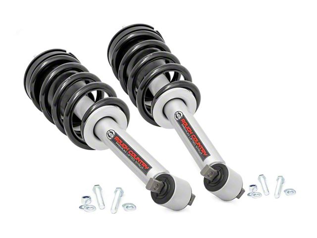 Enhanced Ride Stability. The Rough Country N3 Loaded Front Struts for Stock Height are engineered to deliver a balanced combination of comfort and control. These struts maintain OE-style ride quality while improving handling and traction. They are an ideal upgrade for drivers who want dependable performance both on the highway and on rugged terrain.