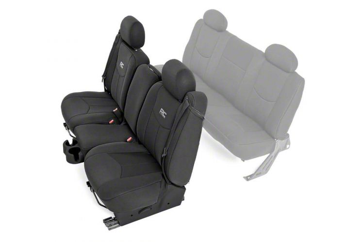 Application. These Rough Country Neoprene Front Seat Covers fit 1999-2006 GMC Sierra 1500 Regular Cab and Extended Cab.