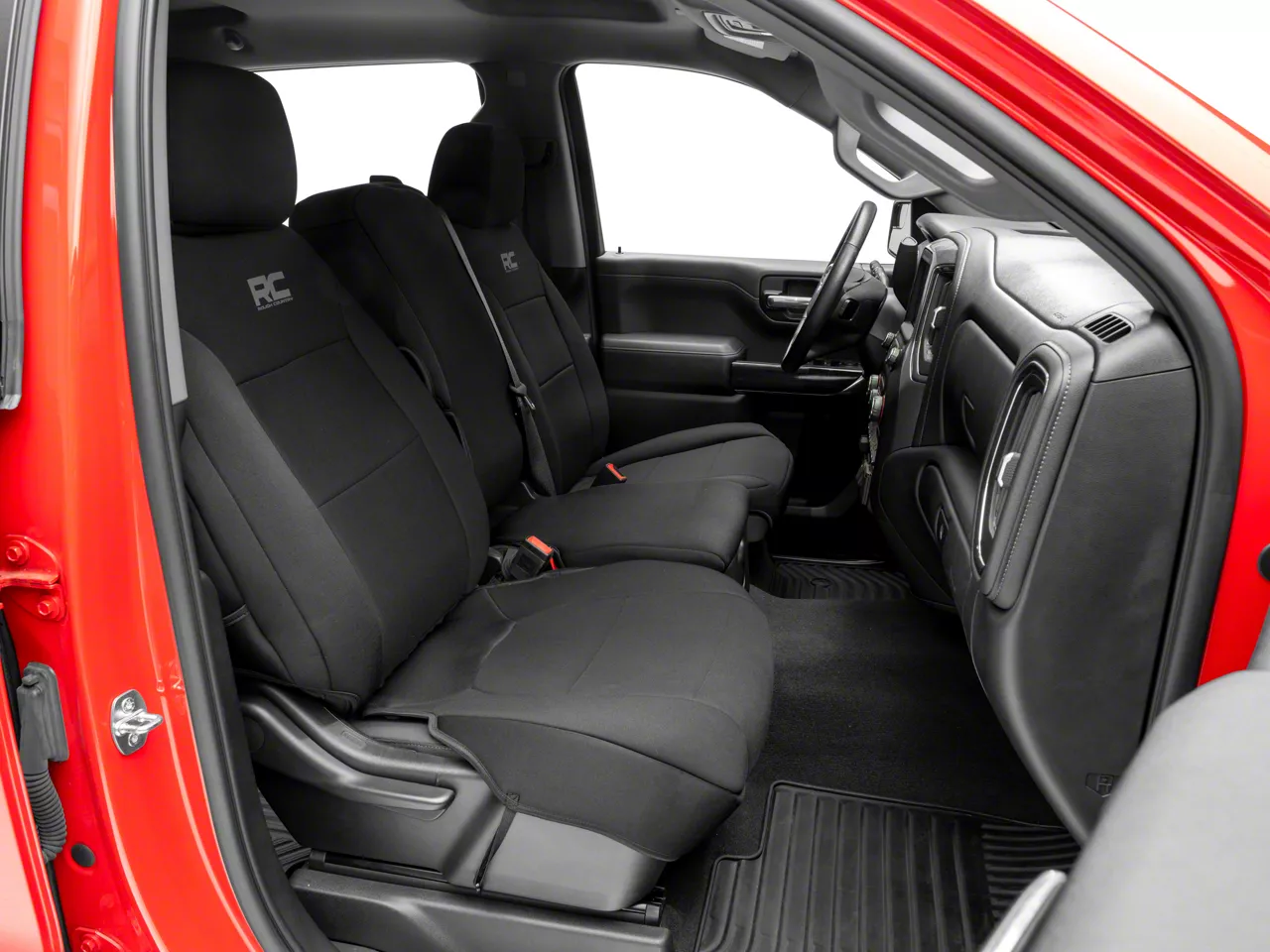 Application. These Rough Country Neoprene Front Seat Covers will fit 2019-2026 Sierra 1500s.