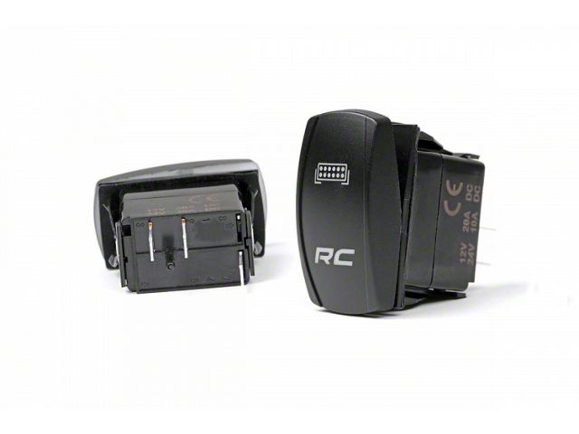Description. There’s simply no better solution for controlling your LED Light bars than Rough Country’s LED Backlit Rocker Switches. Whether you’re looking for a better way to operate multiple lights, or you want a clean way to house your controls, Rough Country Rocker Switches give your off-road lighting controls a flush, factory look. These 20 Amp 12-volt On/Off rocker switches feature a laser-etched LED Light bar icon and "RC" logo, illuminated by a blue LED back light that looks great in any cab. Rough Country Rocker Switches feature a standard 2in x 1in surface area and fit any standard sized switch bezels.