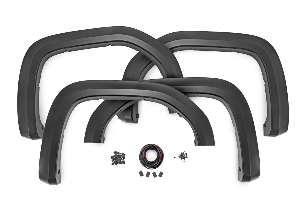 Application. This set of four Rough Country Sport Fender Flares fits 2019-2026 GMC Sierra 1500 models. Offering stylish protection and a durable design, these fender flares are the perfect upgrade to enhance your truck’s appearance and safeguard it from road debris.
