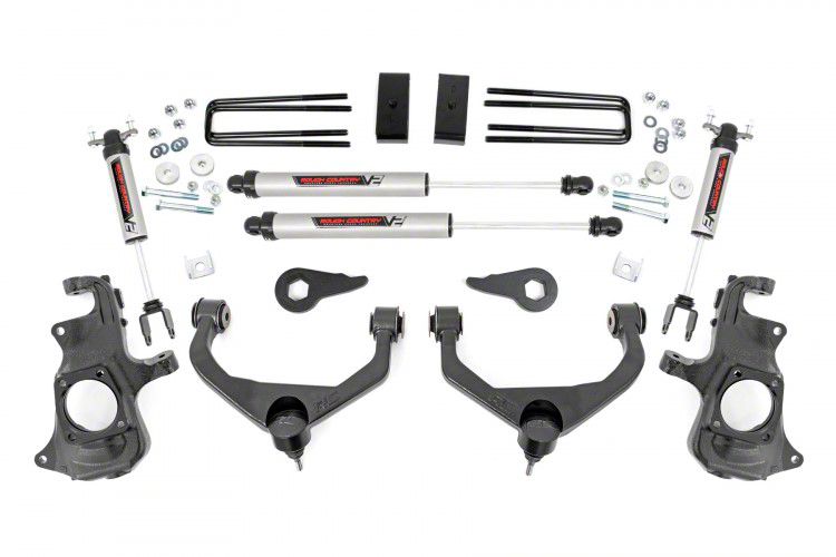 Enhances Rake and Suspension Performance. This Rough Country 3.50-Inch Knuckle Suspension Lift Kit with V2 Monotube Shocks transforms your lifted work truck into an even more capable off-roader. It is equipped with the components needed to provide your truck with remarkable stability, excellent clearance, and improved suspension articulation on extreme terrain. This lift kit also adds to your truck’s aggressive look by leveling its front with its rear, making it look more intimidating than before.